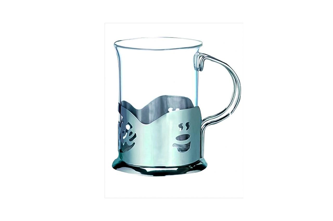 Тонкий скляний стакан об’ємом 200 мл в підстаканнику з харчової нержавіючої сталі. Підсклянник має у верхній частині діаметр 75 мм і в нижній частині діаметр 60 мм.Висотас ручкою -95 мм Стакан має у верхній частині діаметр 70 мм і в нижній частині діаметр 60 мм.Висота 85 мм Наборподстаканнік зі склянкою можна мити в посудомийній машині Упакований в коробку з кольорового картону. Дозволено зберігання в холодильнику.