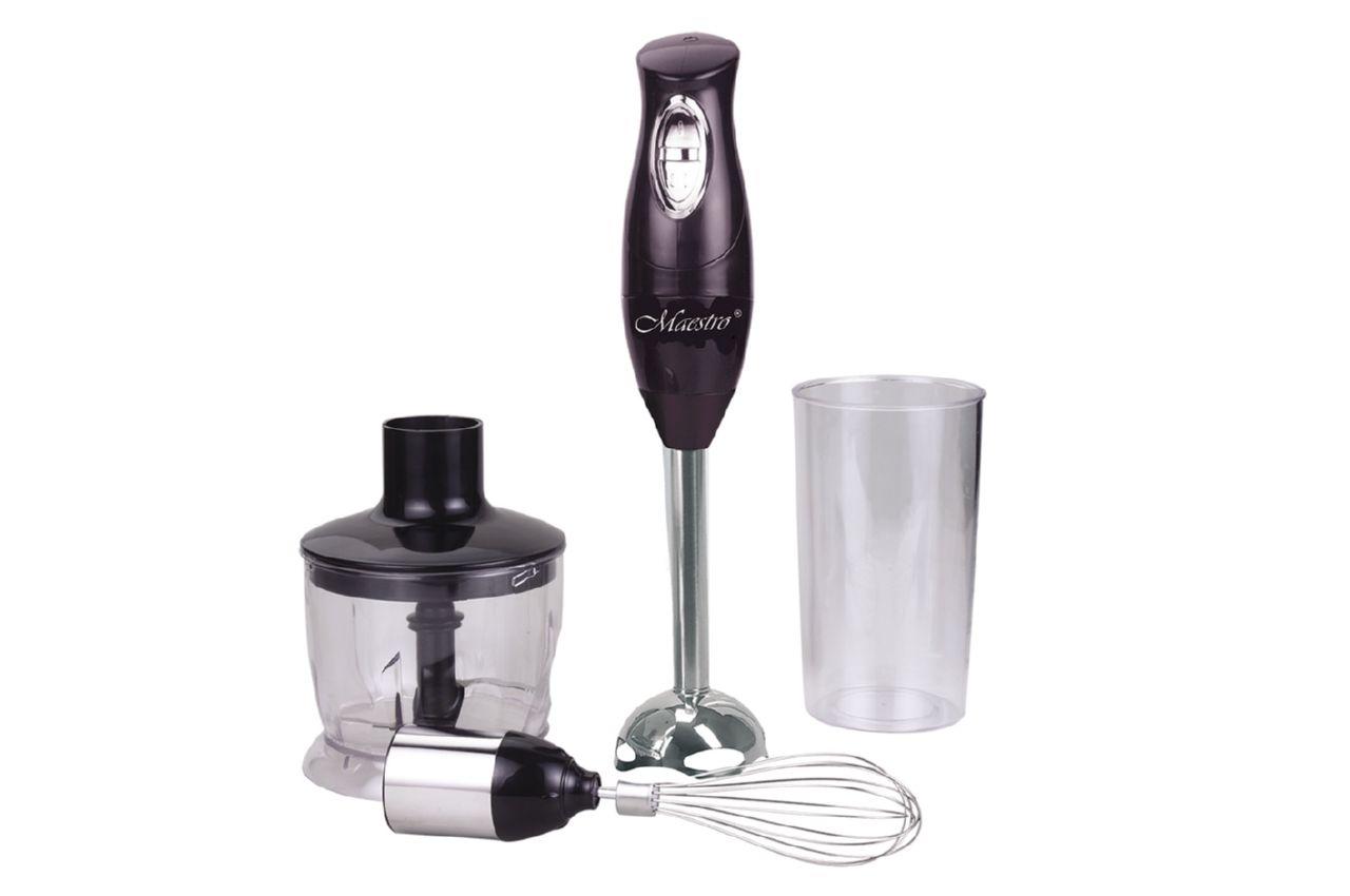Виробник – Maestro;Країна виробник – Китай;Тип блендера – Заглибний;Матеріал занурюваної частини – Метал;Матеріал корпусу – Пластик;Матеріал глечика блендера – Пластик;Споживана потужність, Вт – 300;Об’єм глечика, л – 0,6;Тип – Заглибний;