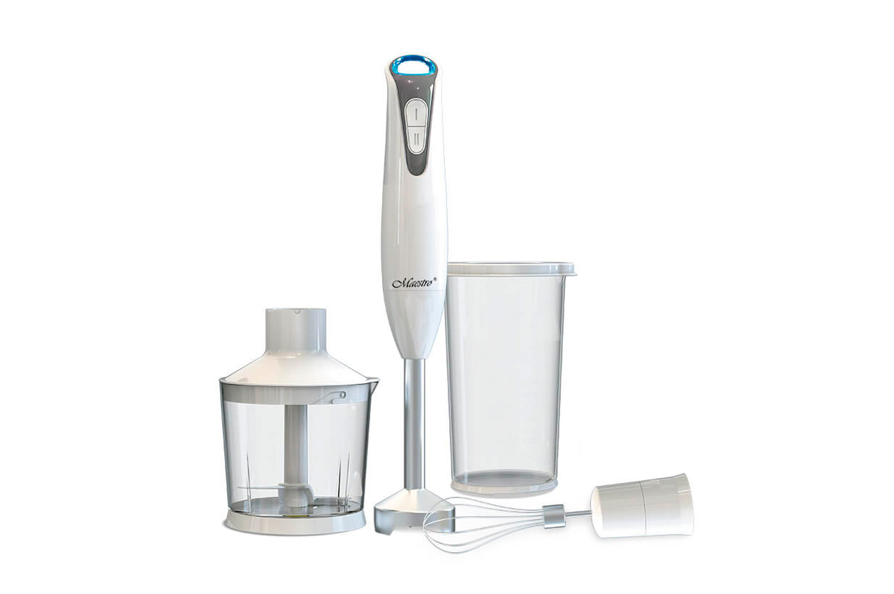 Виробник – Maestro;Країна виробник – Китай;Тип блендера – Заглибний;Матеріал корпусу – Пластик;Матеріал глечика блендера – Пластик;Споживана потужність, Вт – 400;Об’єм глечика, л – 0,5;Тип – Заглибний;Матеріал занурюваної частини – Метал;