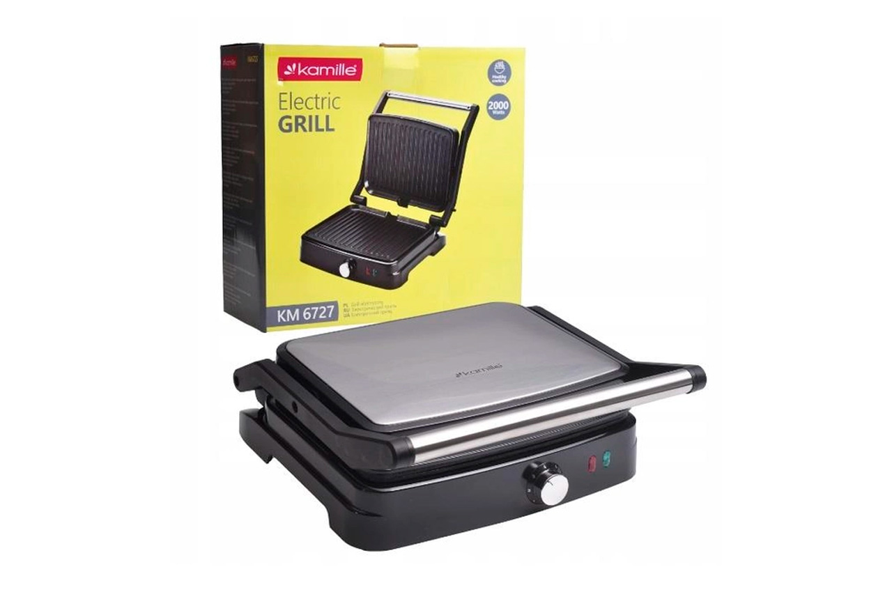 Виробник – Kamille;Країна виробник – Китай;Тип – Гриль;Споживана потужність, Вт – 2000;Тип приладу – Електричний контактний гриль;Тип нагріваючої поверхні – Ребриста плита;Знімні пластини, що нагріваються – Так;