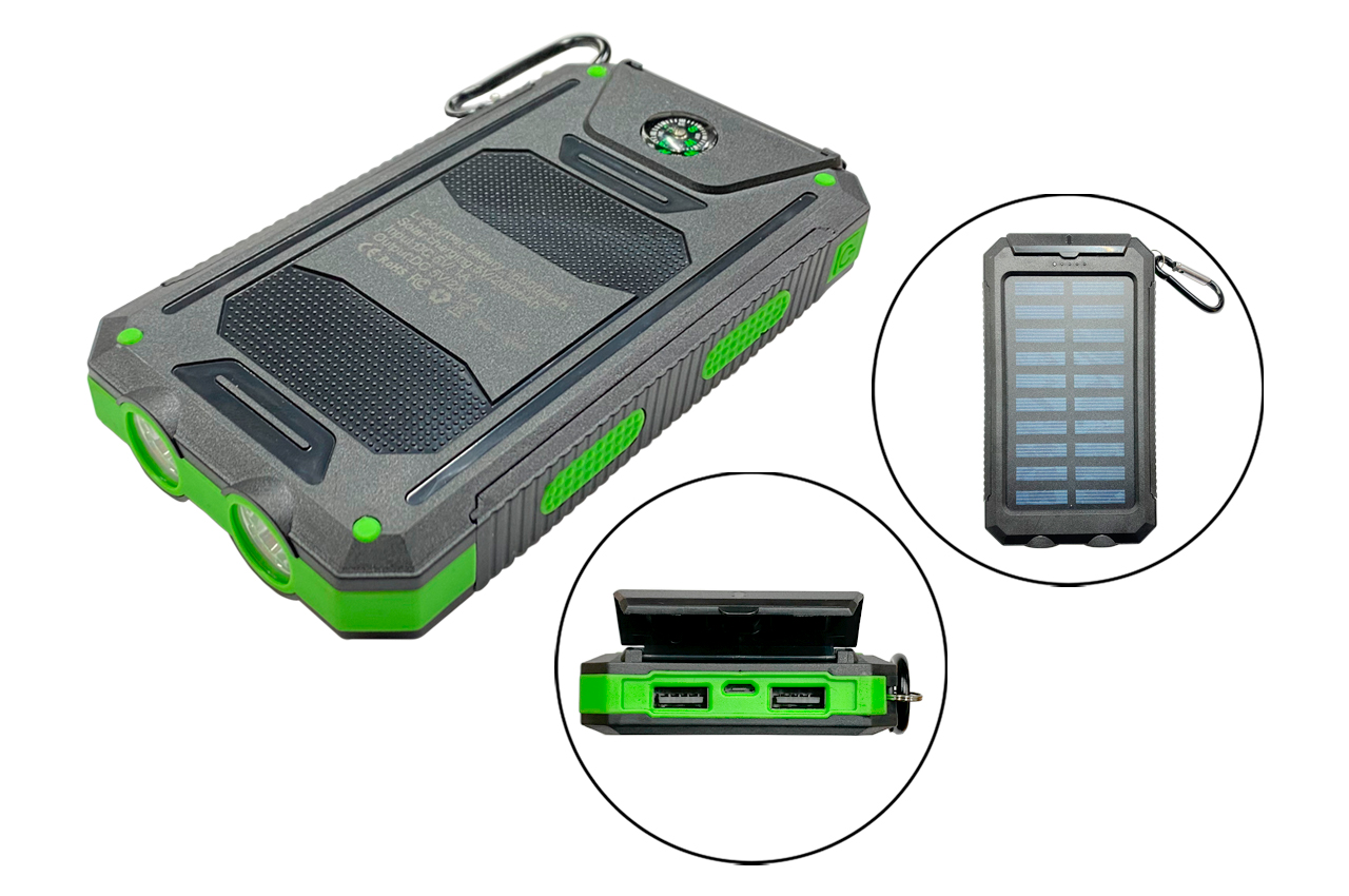 Павербанк сонячний 16000 mAh з ліхтарем та компасом (удароміцний, вологозахист)
