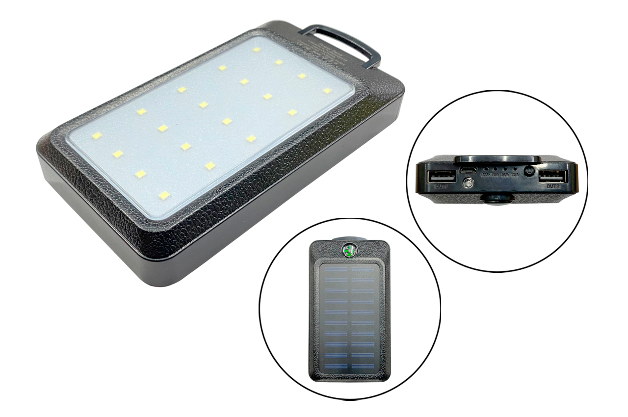 Павербанк сонячний 20000 mAh з ліхтарем та компасом (удароміцний, вологозахист)