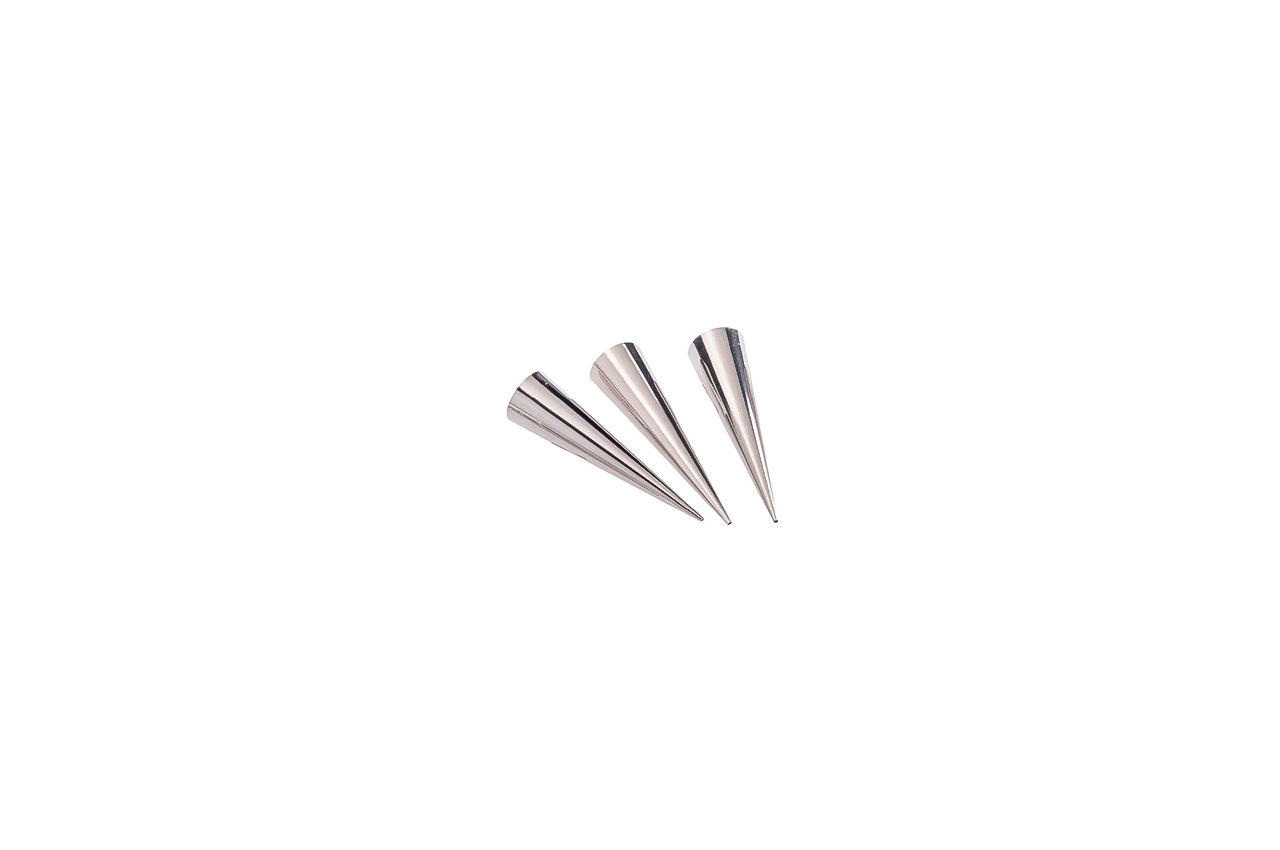 Набір конусів для листкових трубочок, круасанів і рогаликів Empire довжиною 115 мм -для кондитерів-аматорів. Інструменти виготовлені з харчової нержавіючої сталі з підвищеною стійкістю до окислення. Вони набагато міцніше пластикових аналогів і, на відміну від останніх, які не забарвлюються продуктами. Верхній діаметр дорівнює 36 мм, нижній – 0,4 см.в наборі – 6 штук. Завдяки їх твердої структурі десерти виходять ідеально рівними, а за смаком вони нерідко перевершують ресторанні ласощі.