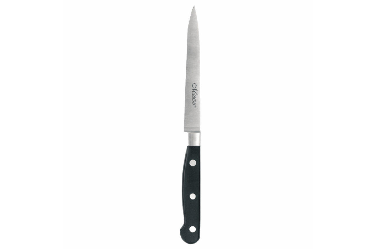 Ніж кухонний Maestro це універсальний кухонний ніж, лезо якого виготовлено з високоякісної нержавіючої сталі, яка відрізняється міцністю і довговічністю, не схильна до корозії і впливу кислот, відповідає всім гігієнічним нормам і вимогам, не впливає на смак і проста в догляді.