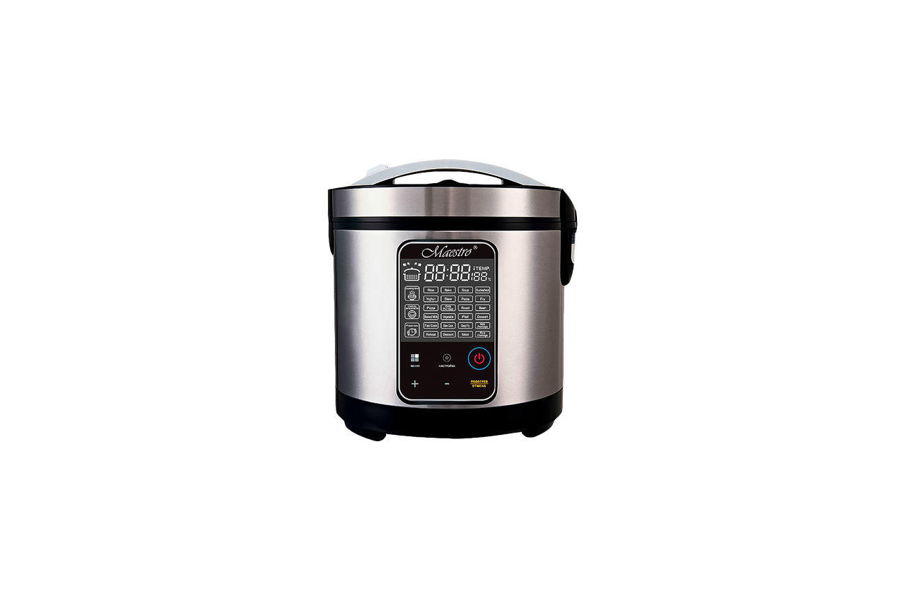 Ємність для приготування з антипригарним покриттям, програмований таймер до 24 год, 33 програми приготування різних страв, великий LCD-дисплей, універсальний помічник на кухні, дозволяє приготувати безліч смачних і корисних страв, електронне управління, корпус з нержавіючої сталі