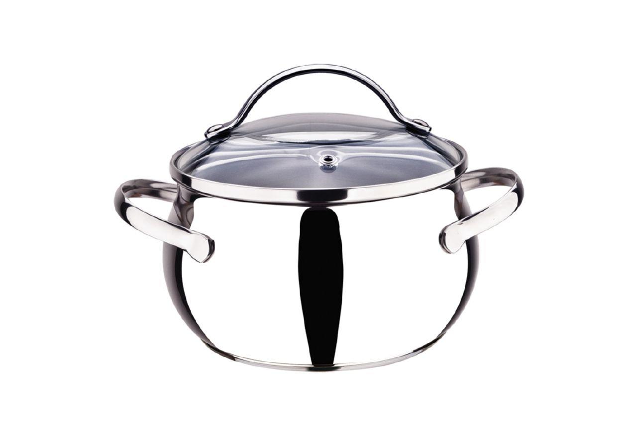 Матеріал – високоякісна нержавіюча сталь 18/10. Зручні металеві ручки. Шкала об’єму рідини. Багатошарове термоаккумулирующее дно. Підходить для всіх типів плит і варильних поверхонь. Кришка з термостійкого скла з отворами для випускання пари. Можна мити в посудомийній машині
