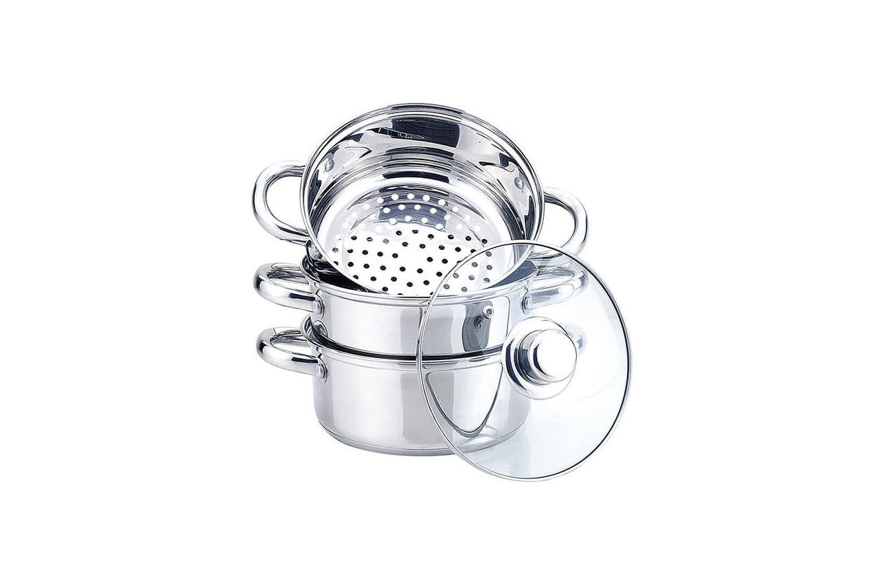 Трирівнева пароварка. Високоякісна нержавіюча сталь. Багатошарове термоаккумулирующее дно. Можливе використання на всіх типах плит