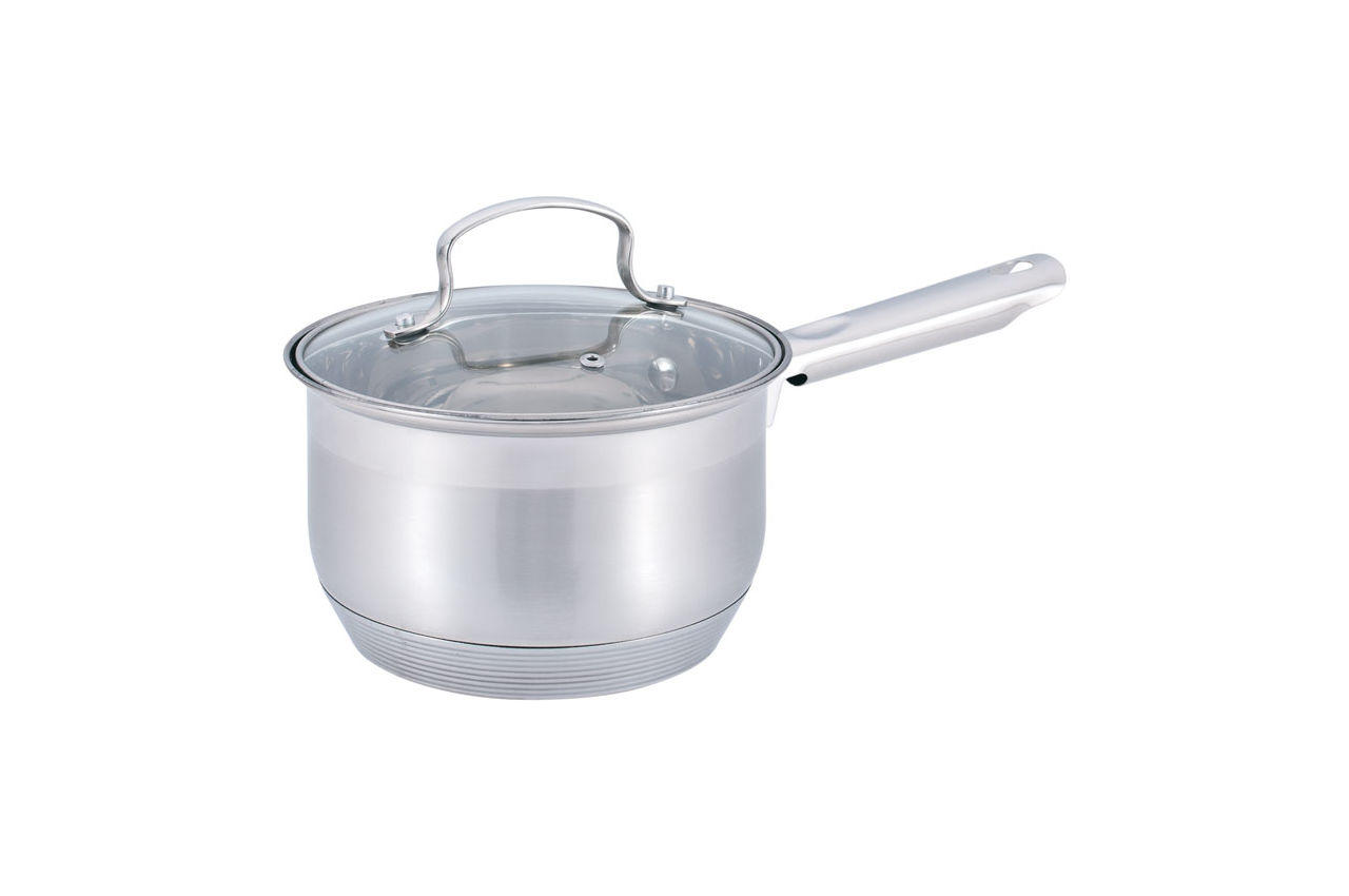 Ківш Maestro MR 3512-16S об’ємом 2,1 літра, виготовлений з високоякісної нержавіючої сталі, комбінований матовий корпус з дзеркальною смугою вгорі. На передній стороні нанесено логотип Maestro Basic. Товсте термоакумулююче дно підходить для будь-яких джерел тепла, включаючи індукцію. Скляна кришка діаметром 16 см з отвором для виходу пари та захисним сталевим обідком по периметру.