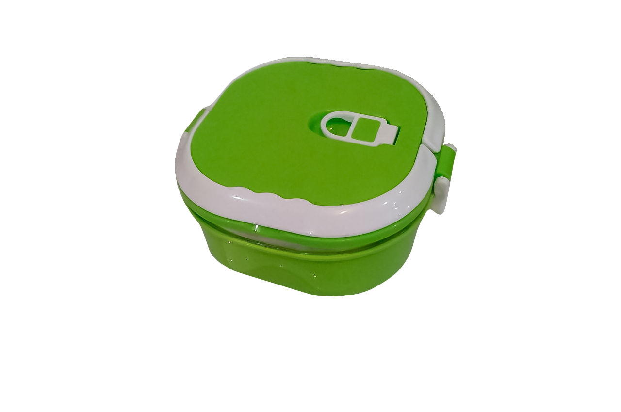 Ланч бокс квадратної формиіз харчової нержавіючої сталі, покритої зовні пластіком.Об’ем 700 мл.Висота 85 мм, довжина 170 мм, ширина 155 мм.У комплекті пластикова ложка. Колір пластика: малиновий, салатовий, синій.