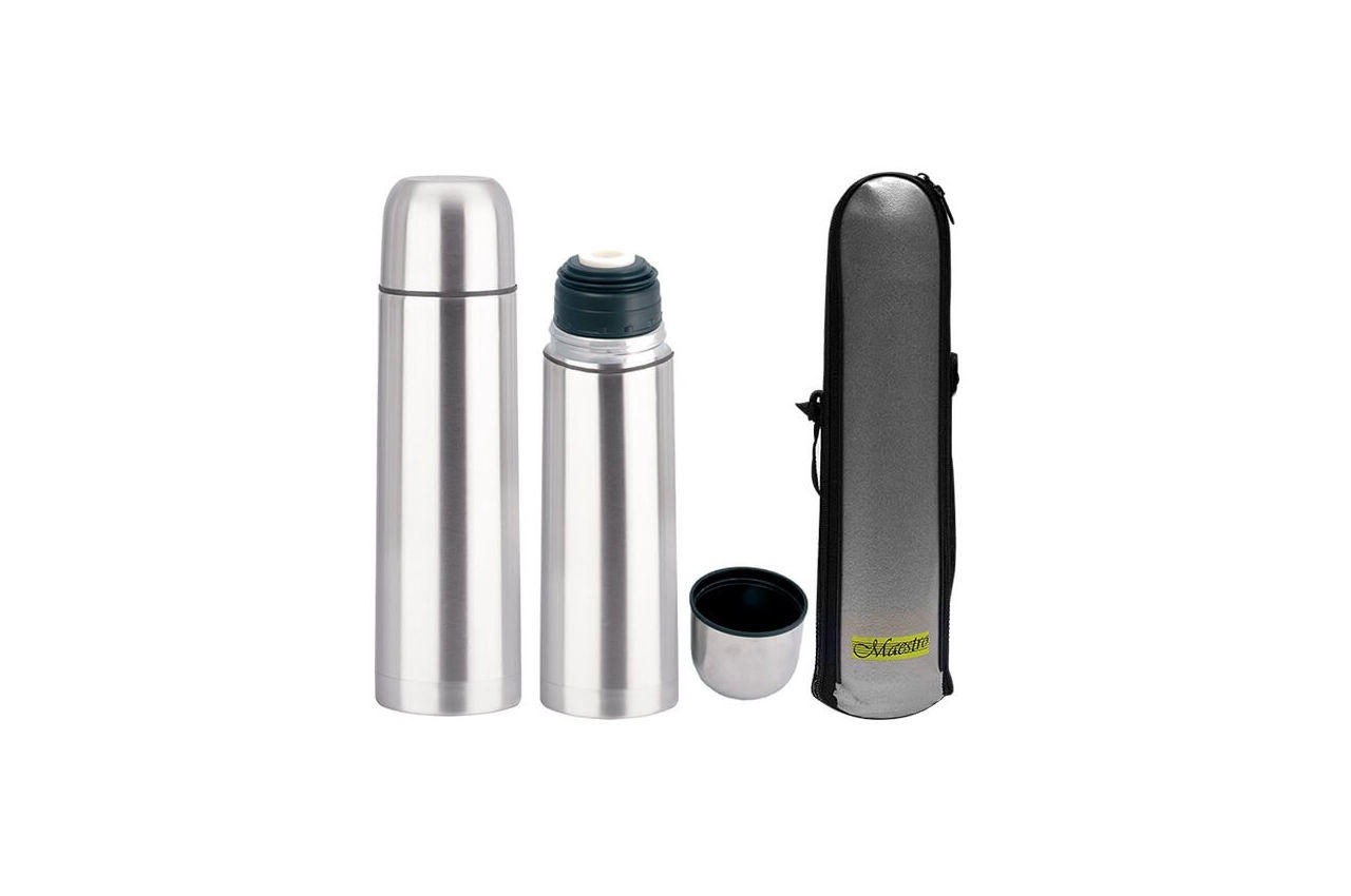 Термос із нержавіючої сталі об’ємом 1 літр Maestro MR 1633-100 чудово зберігає тепло та легко миється. У комплект входить зручний чохол для транспортування, що застібається на блискавку.