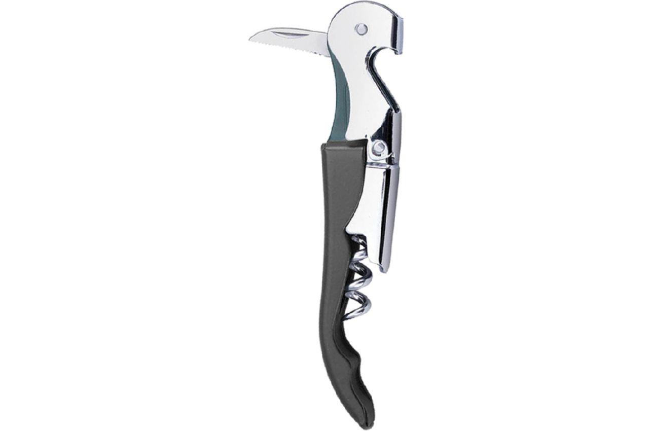 Штопор-ніж включає в себе: консервний ключ, штопор і ніж. Виготовлений з нержавіючої сталі з ергономічною ручкою.